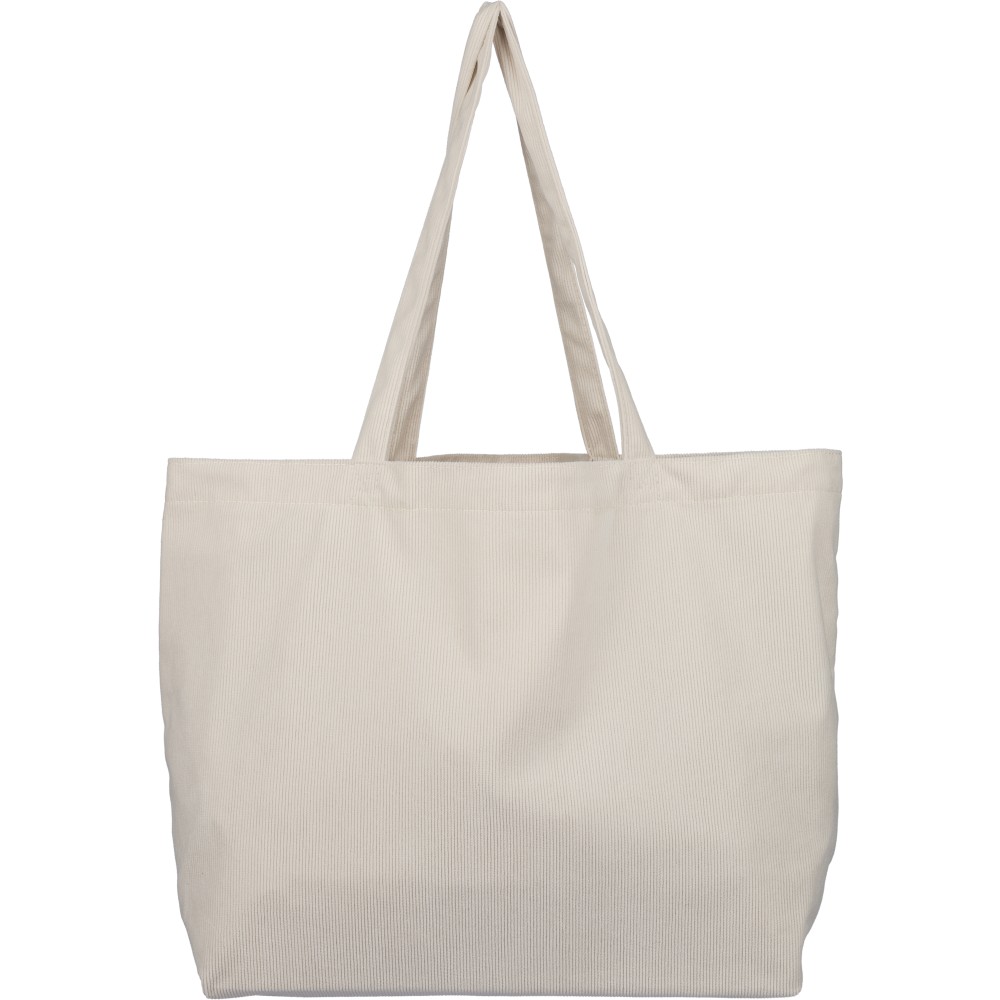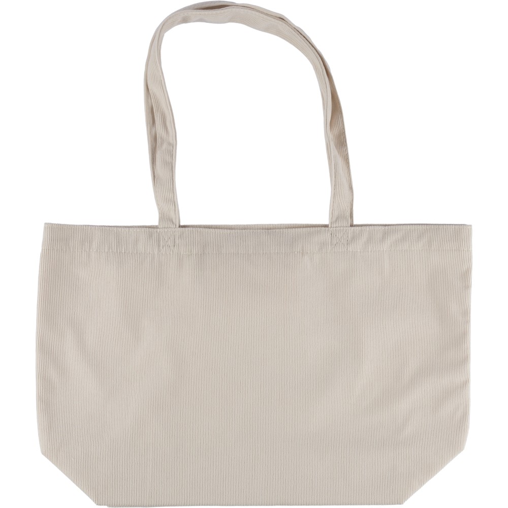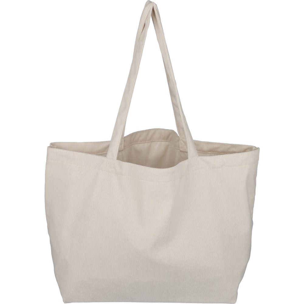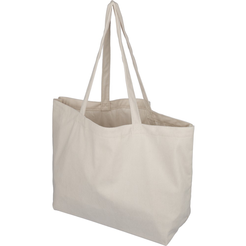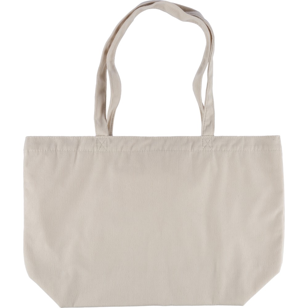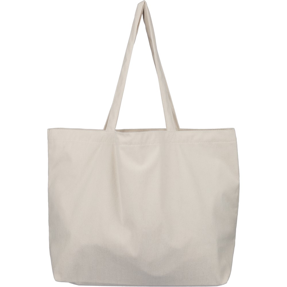 Kordbársony anyagból készült válltáska 2,5 × 60 cm hosszúságú fülekkel, 51 × 15 × 33 cm méretű tágas fő rekesszel és 10 × 10 cm méretű belső zsebbel. Mindennapi használatra alkalmas. Emblémázás: Szitanyomás