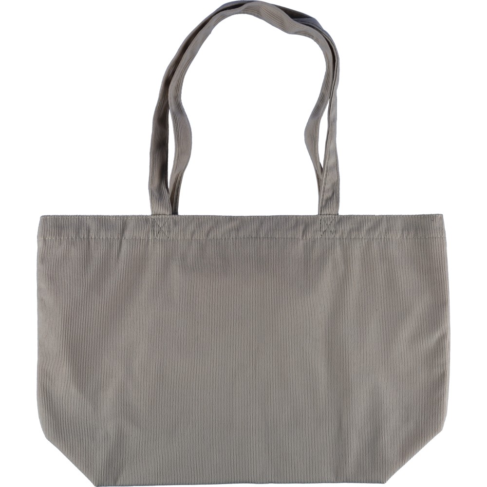 Kordbársony anyagból készült válltáska 2,5 × 60 cm hosszúságú fülekkel, 51 × 15 × 33 cm méretű tágas fő rekesszel és 10 × 10 cm méretű belső zsebbel. Mindennapi használatra alkalmas.