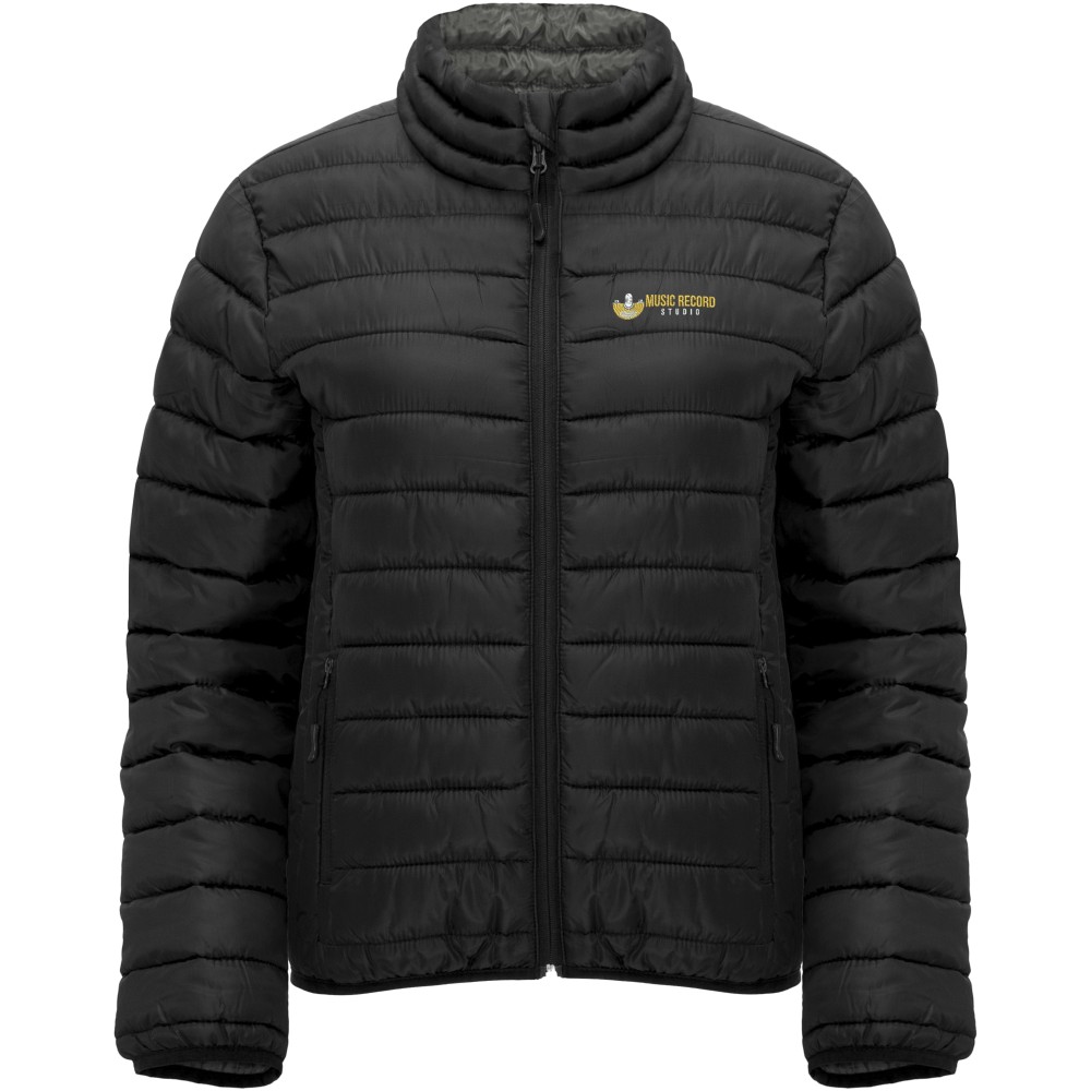 Női, karcsúsított, steppelt dzseki tollszerű tapintású töltettel, tasakkal. Fordított cipzárak, színben illeszkedő állvédővel és cipzárral. Két cipzáras elülső zseb. Gumis szegély a galléron, a kézelőn és az aljon. Kontrasztos színű bélés. Könnyű és összehajtható ruhadarab. Vízálló. Szélálló. 100% poliészter, 290 g/m2. Bélés és töltet: 100% poliészter. Emblémázás: Hímzés