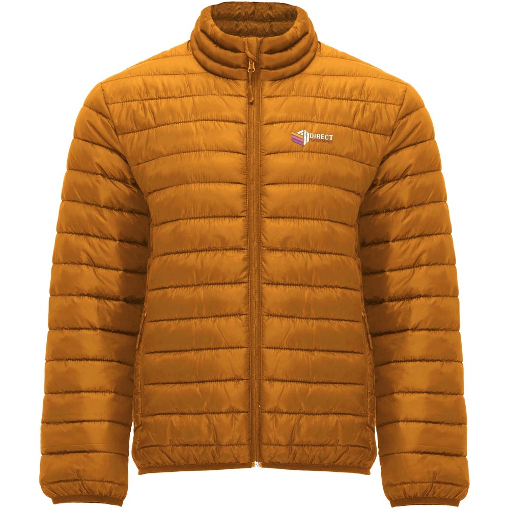 Férfi steppelt, dzseki tollszerű béléssel, tokkal. Fordított cipzárak, hozzáillő színű állvédő és cipzár. Két cipzáras elülső zseb. Színben illeszkedő szegély a galléron, a kézelőn és az alsó szegélyen. Kontrasztos színű belső bélés. Könnyű és összehajtható ruhadarab. Vízálló. Szélálló. 100% poliészter, 290 g/m2. A bélés 100% poliészter, a töltet 100% poliészter. Emblémázás: Hímzés
