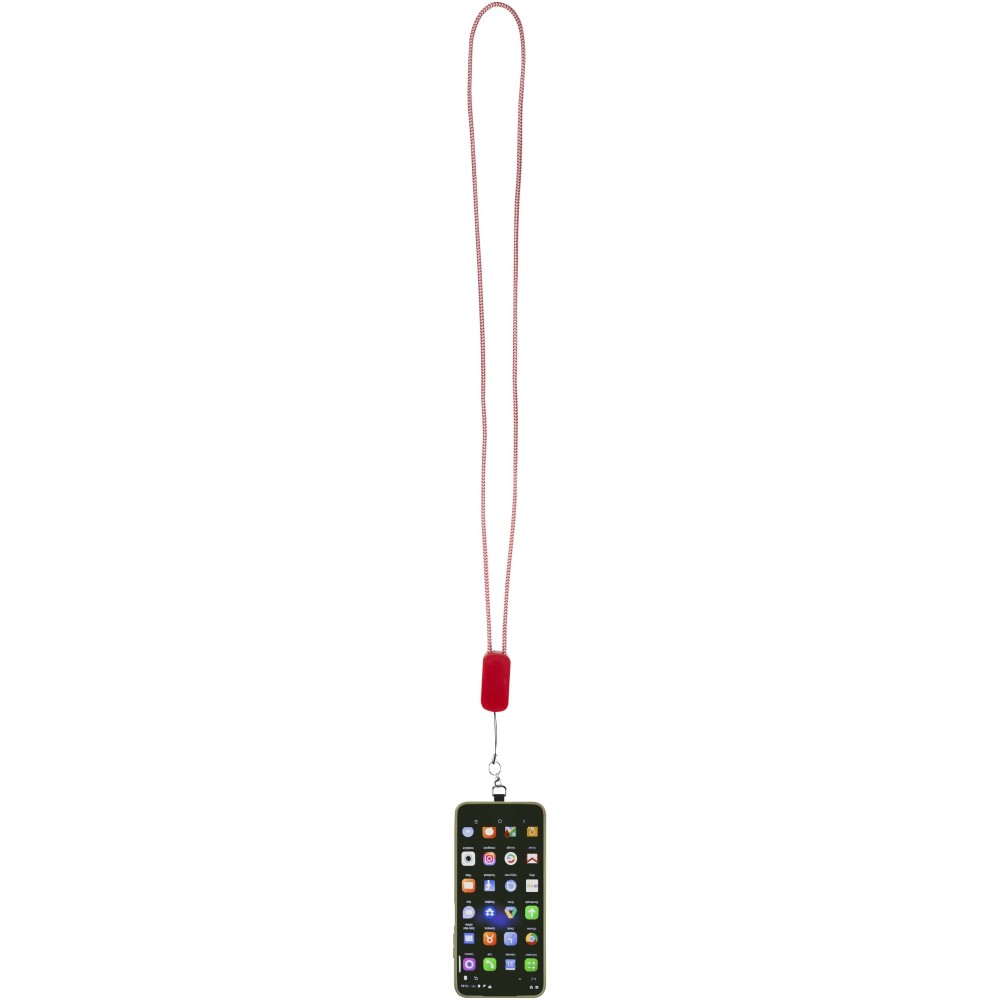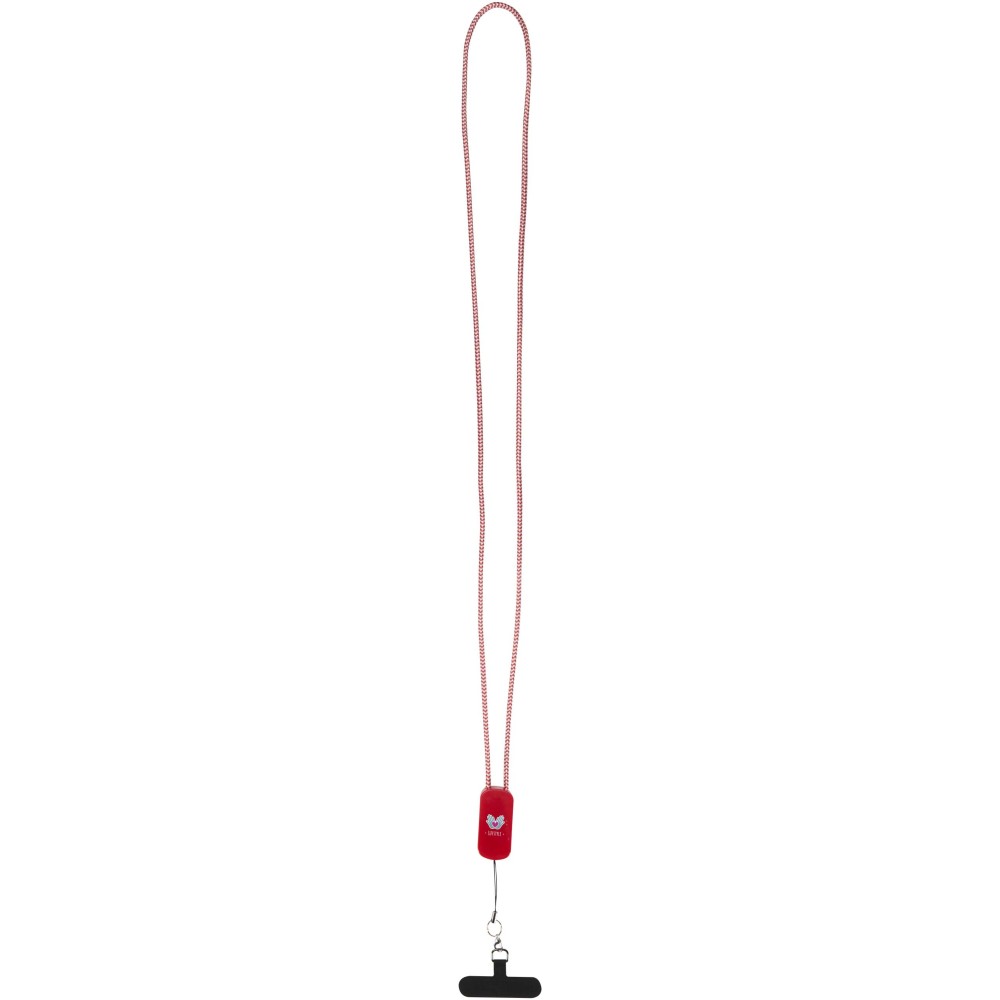 Az Anser okostelefon-nyakpánt újrahasznosított anyagokból készült, így segít, hogy eszközei útközben is feltöltve és elérhető közelségben maradjanak. A termék egy beépített, 27 W-os 5 az 1-ben töltőkábelt tartalmaz, amely USB-A és Type-C bemenettel, valamint Type-C és Lightning kimenettel rendelkezik a gyors töltés érdekében. A tartozék részét képező átlátszó betét a telefontokon keresztül rögzíti a készüléket, így ez a praktikus kiegészítő egyszerre nyújt kényelmes, szabadkezes használatot és hatékony energiaellátást. Emblémázás: Tamponnyomás,