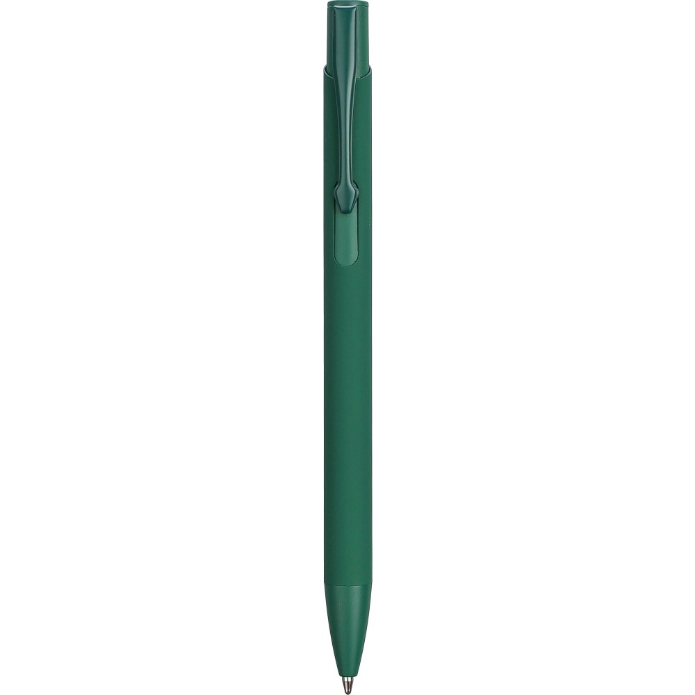 Újrahasznosított alumíniumból készült golyóstoll gumírozott bevonattal a tolltesten. A klipsz, a tollhegy és a nyomógomb azonos színű. A klipsz fémből, a tollhegy műanyagból készült. Kb. 800 méter íráshossz. Gravírozott újrahasznosított alumíniumra utaló logóval. Kék tollbetéttel. Emblémázás: Gravírozás