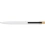 Újrahasznosított alumíniumból készült, lakkozott, nyomógombos golyóstoll bambusz nyomógombbal, rPET díszítéssel és fém klippel. A tolltesten gravírozott recycled (újrahasznosított) alapanyagra utaló logó található. Megközelítőleg 700 méter íráshossz, kék tollbetéttel.
