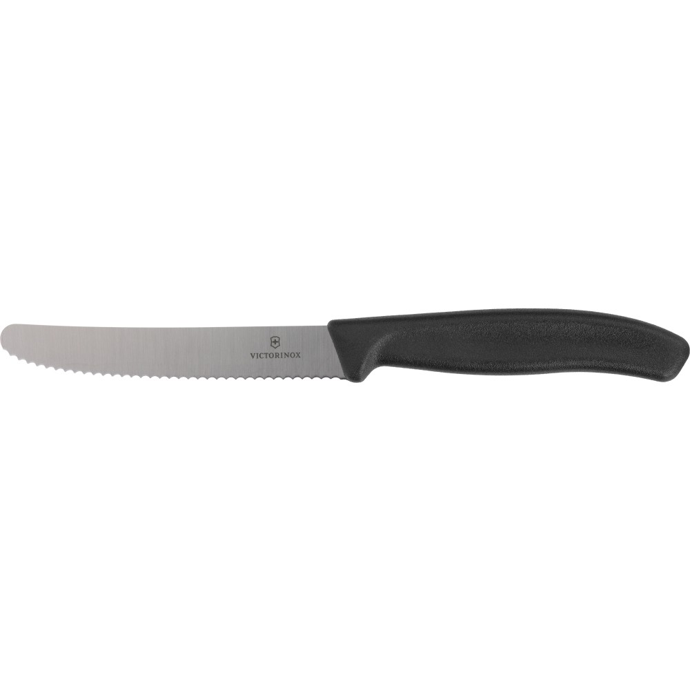 Ez a Victorinox Swiss Classic reggelizőkés precíz és könnyed vágásra készült. A rozsdamentes acél penge egyszerűen szeleteli fel a paradicsomot és más puha vagy kemény alapanyagokat, így ideális választás a mindennapi konyhai használatra. A kés tartós rozsdamentes acél pengével és ergonomikus markolattal rendelkezik a kényelmes és biztonságos fogás érdekében. A Victorinox világszerte ismert svájci bicskáinak minőségéről, és ez a termék ugyanezt a megbízhatóságot és precizitást képviseli a konyhában is.