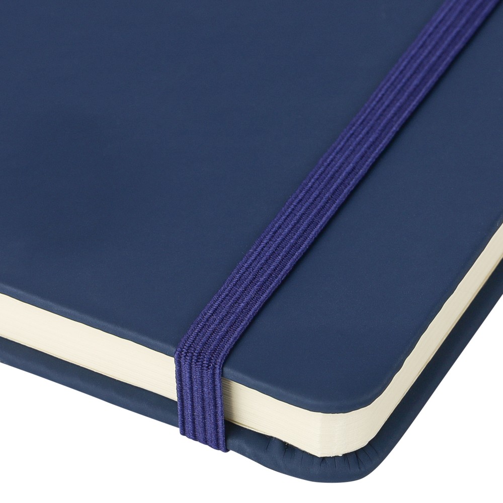A4-es jegyzetfüzet élénk színű, újrahasznosított anyagból (PU) készült kemény borítóval. 96 db kétoldalas, vonalas lapot tartalmaz (6 g/m2), 0,7 cm-es vonalközzel, az elején és a végén két-két üres oldallal. A füzetben használt papír FSC Mix tanúsítvánnyal rendelkezik. Színben illeszkedő gumírozott rögzítőpánttal, beépített könyvjelző szalaggal és a hátoldalán dombornyomott újrahasznosított PU logóval ellátva.