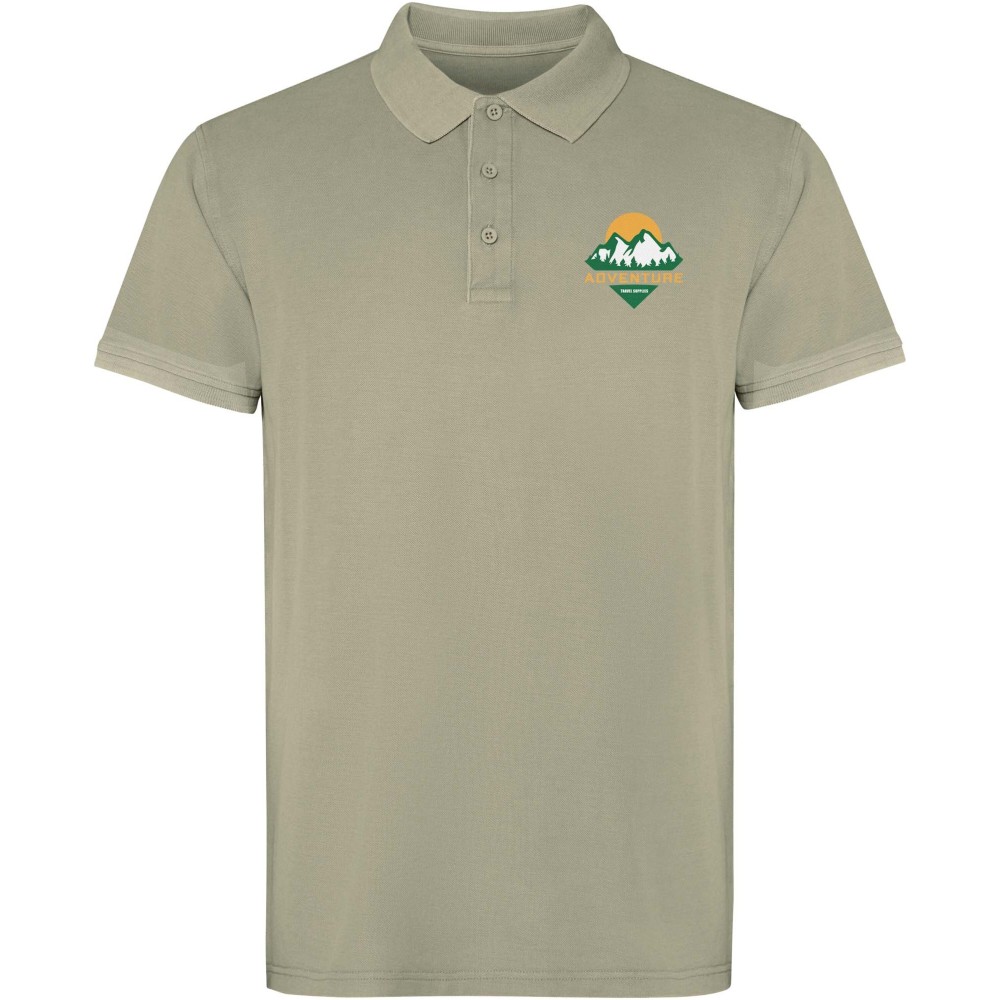 Rövidujjú, uniszex piképóló, amely koptatott (acid-wash) felületkezeléssel készült az egyedi megjelenés érdekében. A gallér és ujjpasszé 1x1 bordás kötésűek, az oldalán sliccelve a kényelmes viseletért. A modell színazonos fedőöltésekkel és háromgombos gombolópanellel rendelkezik. 100% pamut, 200 g/m2. Emblémázás: Hímzés, Szitanyomás