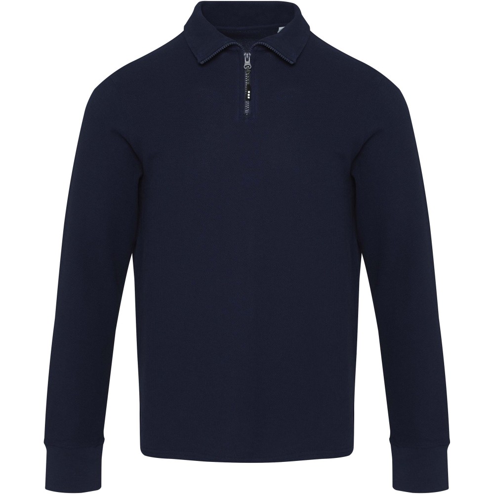 A Zeus uniszex hosszúujjú, félcipzáras felső egész évben kényelmes viseletet biztosít. Anyaga piqué kötésű, amely kellemes tapintású és tartós kialakítású. A kidolgozást finom pick stitch varrásrészletek egészítik ki, az azonos alapanyagból készült nyakszalag-erősítés pedig hozzájárul a hosszabb élettartamhoz. Az oldalsó sliccek, szintén saját anyagból készült betétekkel, nagyobb mozgásszabadságot tesznek lehetővé. A hőtranszferes márkajelzés cimkementes komfortot nyújt. A termék AWARE nyomonkövetesi technológiával van ellátva, amely egy digitális termékútlevelet tartalmaz, igy biztosítva az átláthatóságot és a fenntarthatósági jellemzők bemutatását. 100% pamut, 245 g/m2. Emblémázás: Hímzés