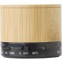 Vezeték nélküli hangszóró hangerőszabályzóval és gombokkal a vissza- és előretekeréshez. Vezeték nélküli mód és MP3 mód. Akkumulátor: 300 mAh. Az akkumulátor élettartama: 2,5 óra. Töltőkábellel. Bambusz. Emblémázás: Gravírozás, Tamponnyomás