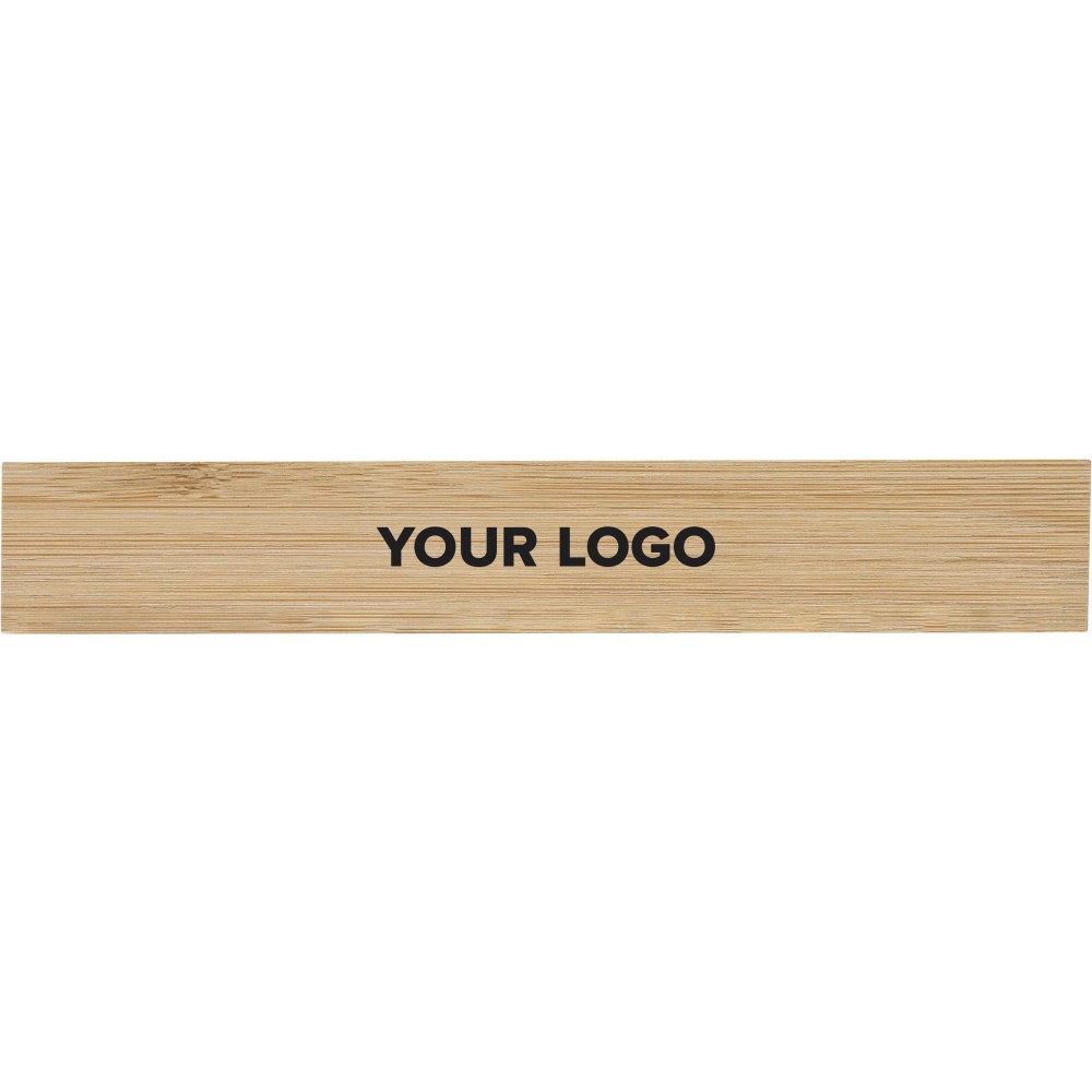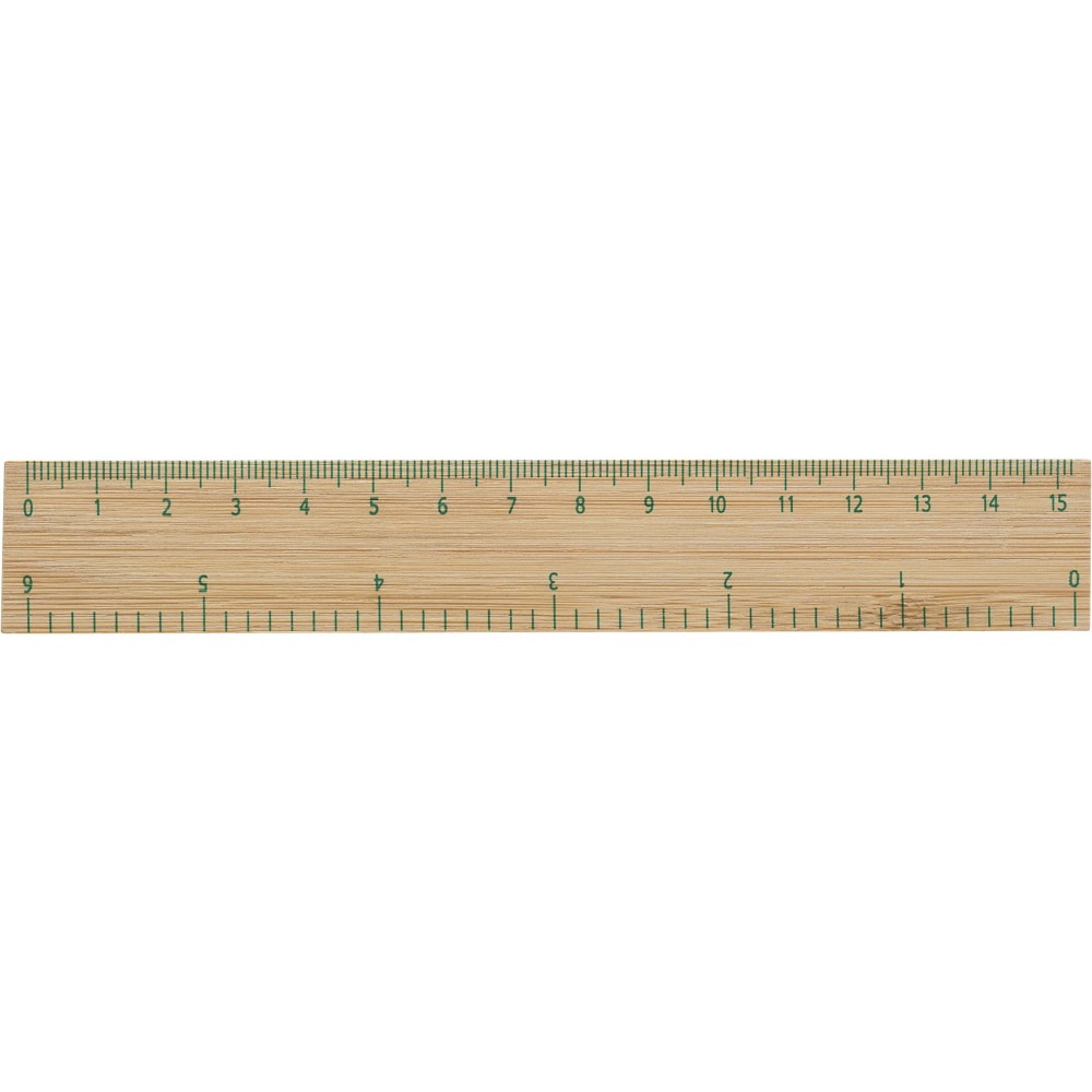 Bambusz vonalzó centiméter és incs beosztással. 15 cm / 6 incs. Emblémázás: Gravírozás, Tamponnyomás