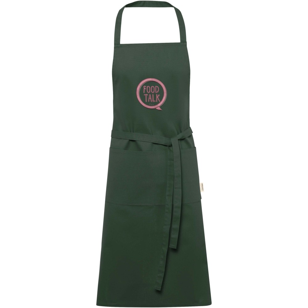 100% OCS tanúsítvánnyal rendelkező, 200 g/m2 sűrűségű, indiai származású organikus pamutból készült kötény, amely két darab, összesen 45 x 20 cm méretű zsebbel és 1 méteres megkötővel rendelkezik. A pánt hossza 55 cm.
