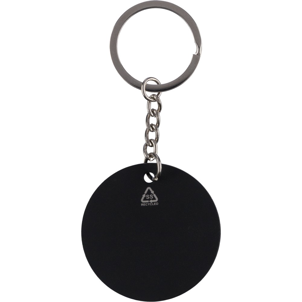 Újraacél kerek kulcstartó, fekete