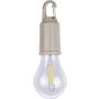 ABS anyagból készült izzó formájú lámpa (60 lumen) 400 mAh kapacitású, újratölthető akkumulátorral. USB-C csatlakozással tölthető. Fém klippel rendelkezik és három világítási móddal. IPX3 védettségi szint. Emblémázás: Tamponnyomás
