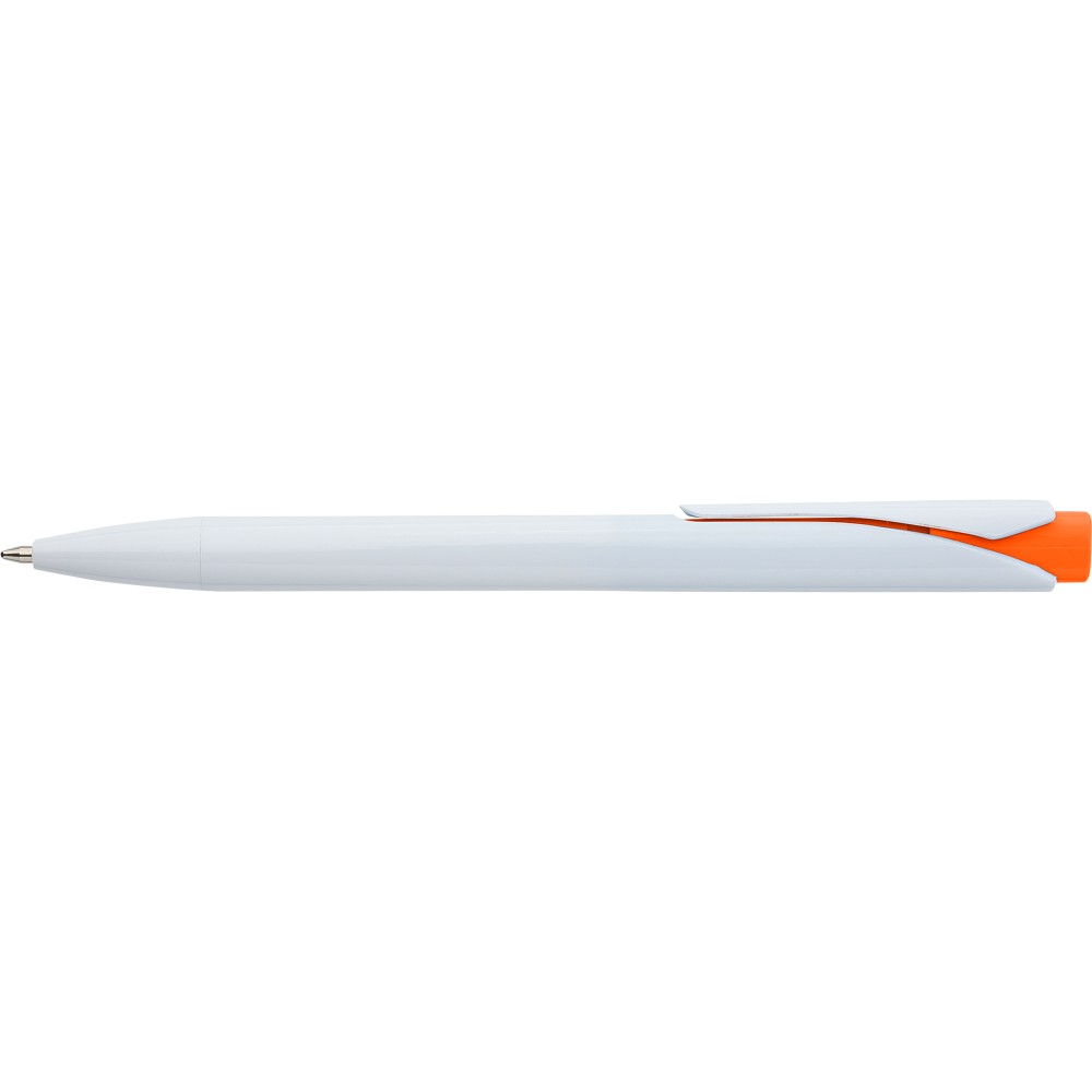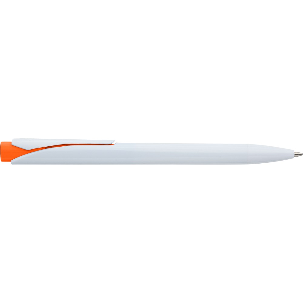 Golyóstoll tömör fehér tolltesttel és színes nyomógombbal. Újrahasznosított ABS-ből készült. Nyomógombos szerkezettel, klipsszel, valamint a nyomógomb tetején újrahasznosított ABS logóval rendelkezik. Kék színű, német Dokumental tollbetéttel, mely körülbelül 800 méter íráshosszt biztosít.