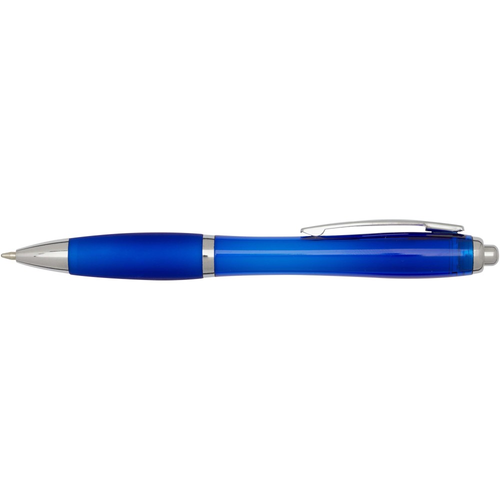 A Nash újrahasznosított műanyagból készült nyomógombos golyóstoll stílusos, ívelt kialakítású, áttetsző színes tolltesttel, ezüst díszítéssel és a tolltest színével megegyező, kényelmes írást biztosító puha fogórésszel rendelkezik. Az RCS tanúsítvánnyal rendelkező újrahasznosított ABS műanyagból készült termék segít csökkenteni a szűz alapanyagok felhasználását, miközben megőrzi tartósságát. A toll hátoldalán található rABS logó jelzi az újrahasznosított anyagösszetételt. Tinta színe: fekete. Tollhegy mérete: 1.0 mm. Íráshossz: 1000 méter.