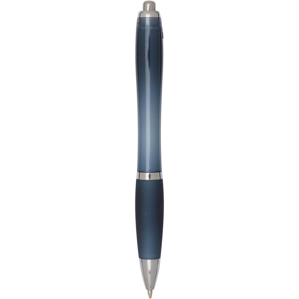 A Nash újrahasznosított műanyagból készült nyomógombos golyóstoll stílusos, ívelt kialakítású, áttetsző színes tolltesttel, ezüst díszítéssel és a tolltest színével megegyező, kényelmes írást biztosító puha fogórésszel rendelkezik. Az RCS tanúsítvánnyal rendelkező újrahasznosított ABS műanyagból készült termék segít csökkenteni a szűz alapanyagok felhasználását, miközben megőrzi tartósságát. A toll hátoldalán található rABS logó jelzi az újrahasznosított anyagösszetételt. Tinta színe: fekete. Tollhegy mérete: 1.0 mm. Íráshossz: 1000 méter.