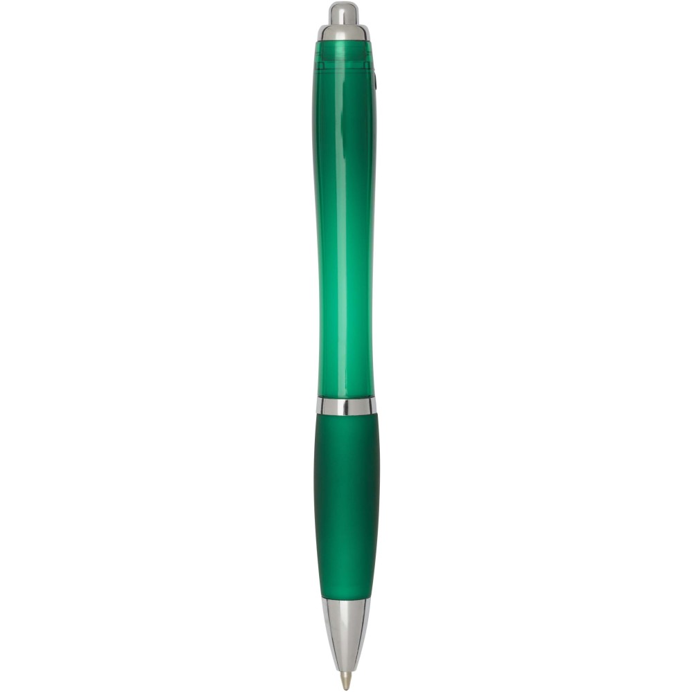A Nash újrahasznosított műanyagból készült nyomógombos golyóstoll stílusos, ívelt kialakítású, áttetsző színes tolltesttel, ezüst díszítéssel és a tolltest színével megegyező, kényelmes írást biztosító puha fogórésszel rendelkezik. Az RCS tanúsítvánnyal rendelkező újrahasznosított ABS műanyagból készült termék segít csökkenteni a szűz alapanyagok felhasználását, miközben megőrzi tartósságát. A toll hátoldalán található rABS logó jelzi az újrahasznosított anyagösszetételt. Tinta színe: fekete. Tollhegy mérete: 1.0 mm. Íráshossz: 1000 méter.