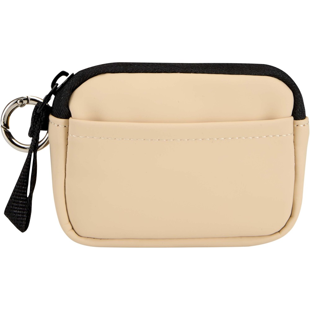 Minőségi újrahasznosított PU bőrből készült, felcsatolható pénztárca, amely ötvözi a letisztult stílust a mindennapi praktikummal. A biztonságos cipzáras záródással és belső kártyatartó rekesszel ellátott kiegészítő gondoskodik az értéktárgyak rendszerezett és könnyen hozzáférhető tárolásáról. Egyszerűen rögzíthető táskához, övbújtatóhoz vagy kulcscsomóhoz.