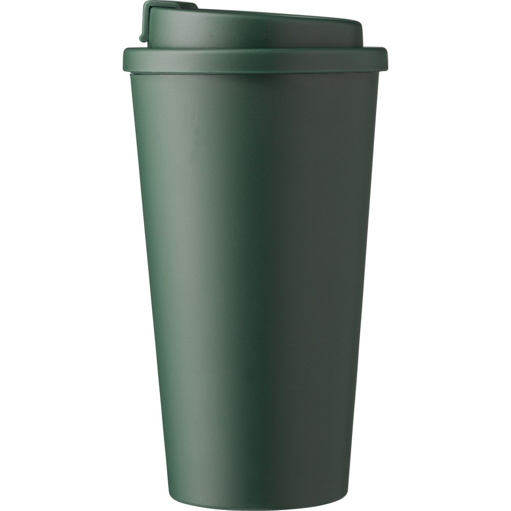 Kávéspohár csavaros fedéllel és felpattintható ivórésszel. Űrtartalom: 475 ml. PP műanyag. Emblémázás: Tamponnyomás