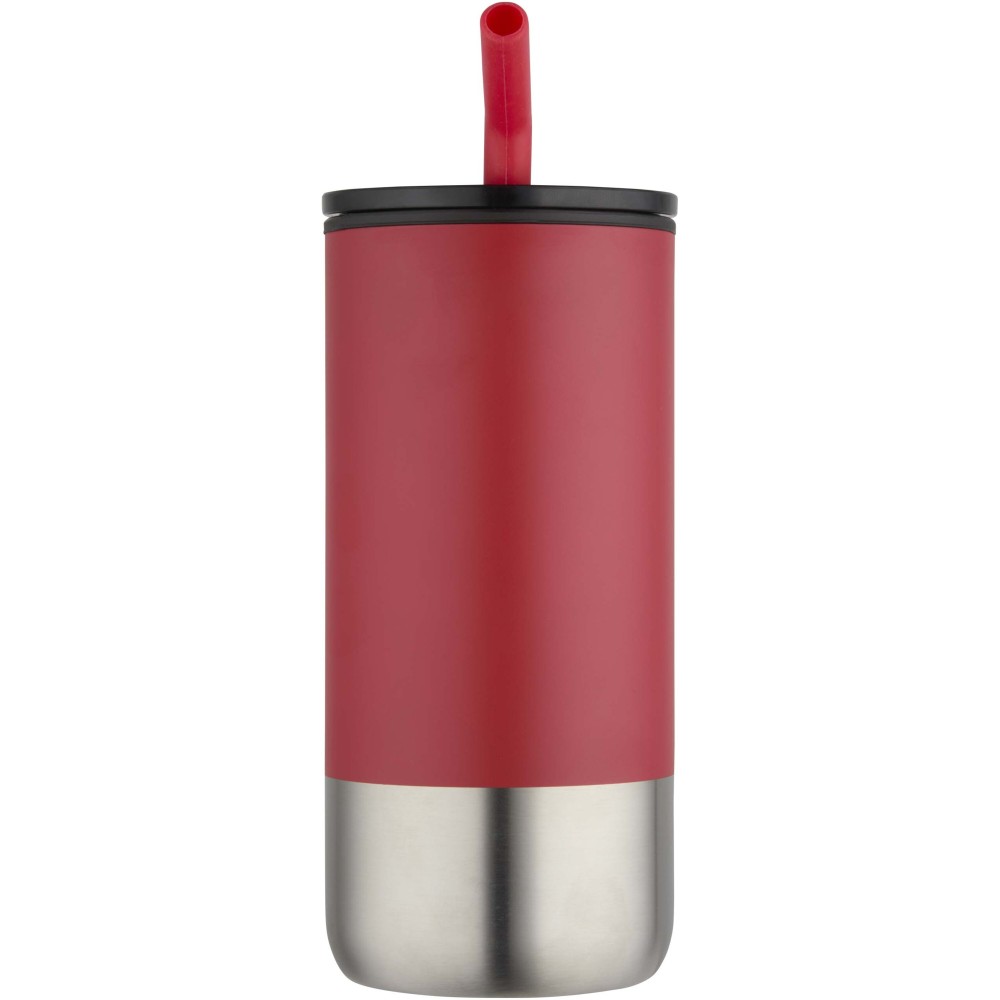 Ez a 480 ml űrtartalmú termoszpohár duplafalú, hőszigetelt kialakítással rendelkezik és egy szilikon véggel ellátott, újrahasznosított rozsdamentes acél szívószál tartozik hozzá a kényelmes használat érdekében. A belső fal PP műanyagból, míg a külső rész RCS tanúsítvánnyal rendelkező, újrahasznosított rozsdamentes acélból készült. A PS és ABS műanyagból készült csúsztatható fedél, valamint a matt külső bevonat elegáns megjelenést kölcsönöz a terméknek.