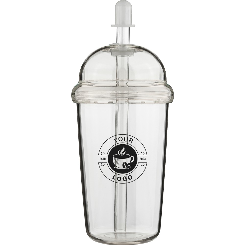 Szívószálas útipohár, 500 ml, átlátszó