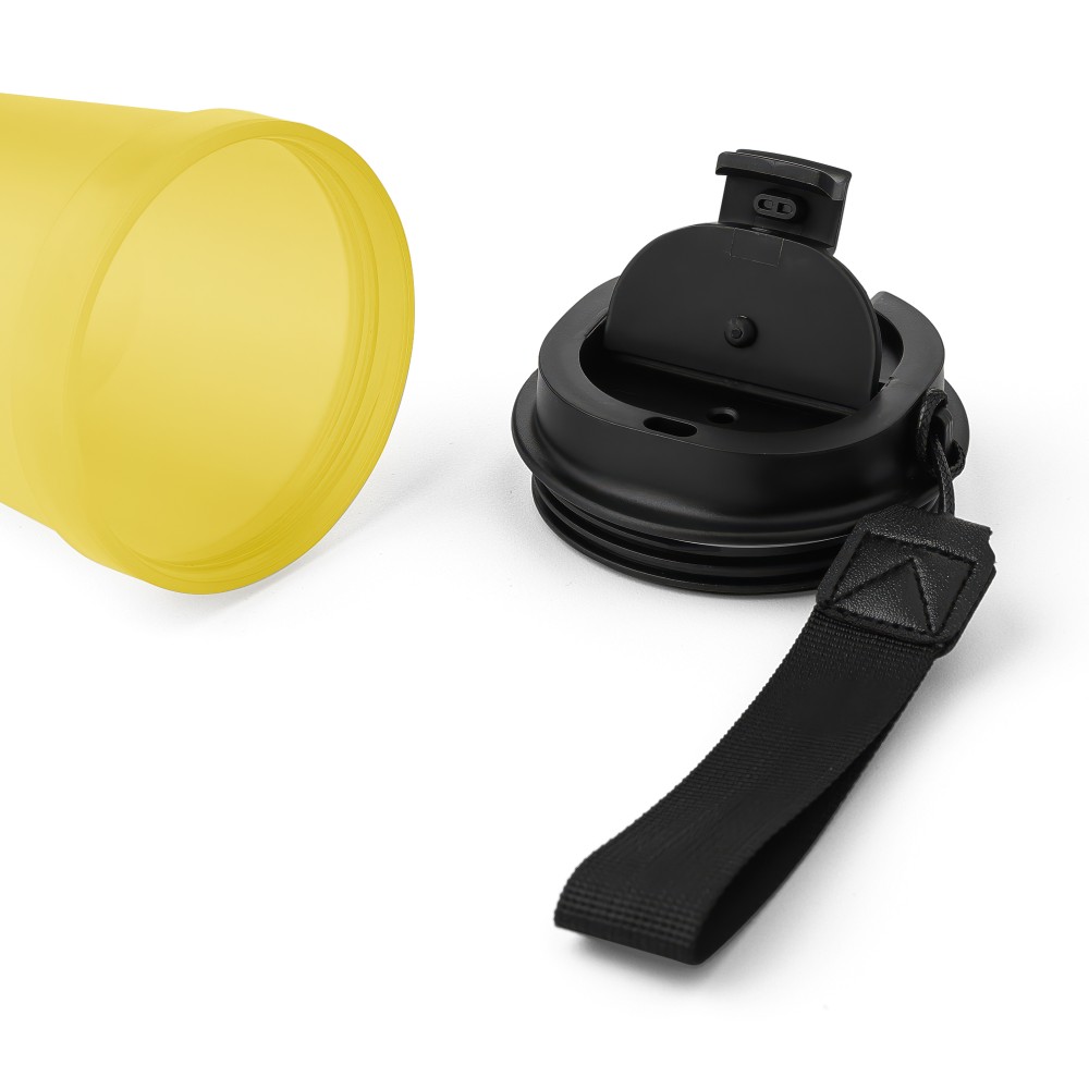 Átlátszó, szimplafalú ivópohár 350 ml-es űrtartalommal, vastagfalú kialakítással. Csavaros fedéllel és poliészter csuklópánttal rendelkezik a könnyű hordozhatóság érdekében. Tartós, ütésálló, megbízható termék. Meleg italokhoz is alkalmas, de kérjük, vegye figyelembe, hogy az egyfalú szerkezet miatt hőátadás előfordulhat.