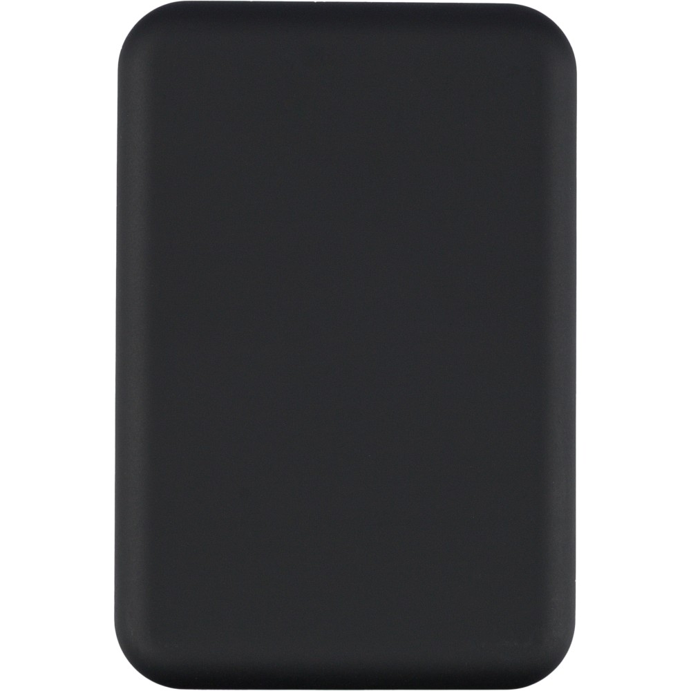 Újrahasznosított ABS anyagból készült vezeték nélküli töltős powerbank 5 000 mAh kapacitással és 15 W MagSafe kompatibilis vezeték nélküli töltéssel. Type-C in/out csatlakozással, beépített biztonsági védelmekkel és automatikus kikapcsolási funkcióval. Nem MagSafe készülékekhez fémgyűrűt tartalmaz. Az oldalán gravírozott recycled (újrahasznosított) alapanyagra utaló logó található. Selyempapírral bélelt barna dobozba csomagolva. Emblémázás: UV nyomtatás