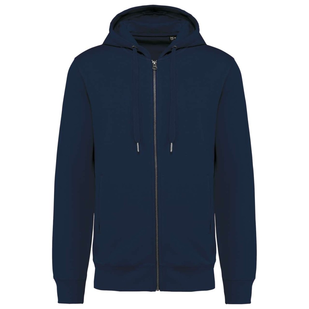 80% bio pamut / 20% újrahasznosított poliészter. Oxford szürke 75% bio pamut / 25% újrahasznosított poliészter. Francia frottír LST (Low Shrinkage Terry). Szövet: enzimes mosás. Karcsúsított szabás. 2 csíkos elülső zseb. Fém cipzár. Bordázott kézelő, bordázott szegély és bélelt kapucni. Fémvégű húzózsinórral. Félhold alakú kivitel a nyakkivágásnál, hogy megkönnyítse a díszítéshez való hozzáférést belülről. Twill szalaggal erősített nyak. Nincs márkacímke a nyakon, csak méretcímke a dekorációhoz való könnyebb hozzáférés érdekében. OEKO-TEX N CQ1007/7 STANDARD 100 tanúsítvánnyal rendelkezik. IFTH. Emblémázás: Hímzés, Szitanyomás