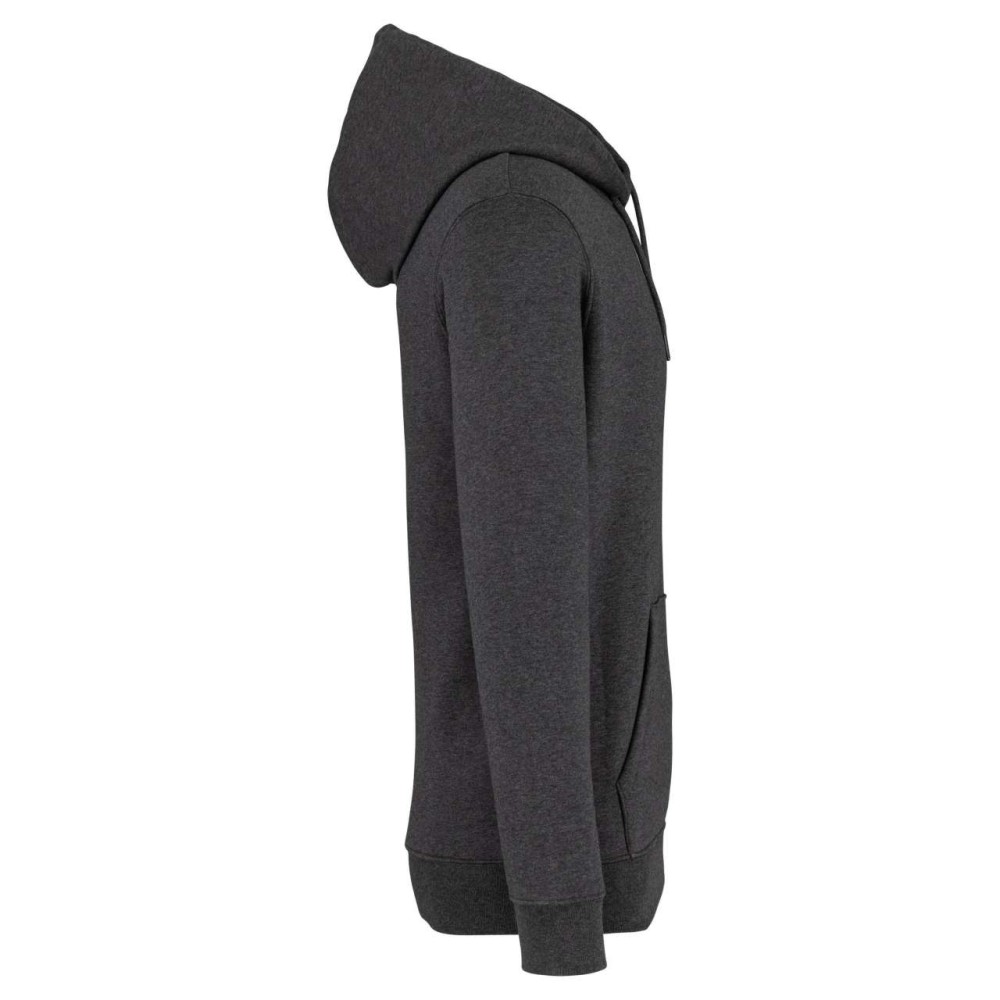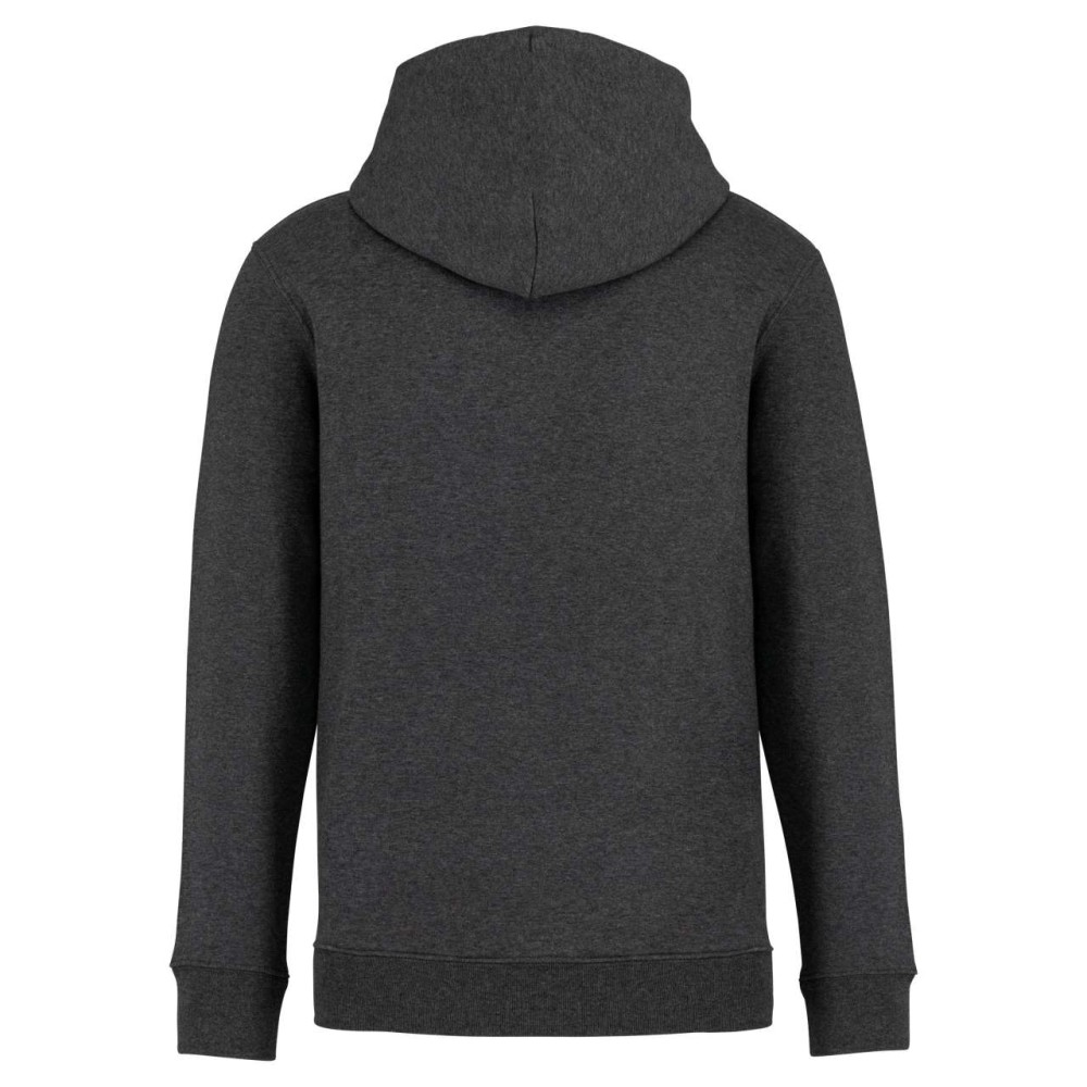 85 % bio, fésült pamutból és 15 % újrahasznosított poliészterből készült. Unisex. Egyenes szabás. Méretcímke organikus pamut és újrahasznosított poliészter logóval. LSF (Low Shrinkage Fleece: előzsugorított polár) kezelés. Kapucni. 1x1 bordás szegély és kézelő. Duplatűzés a kézelőn, a szegélyen és a nyaknál. Szalagozott nyakbelső hátul. Bélelt kapucni, a nyaknyíláson nincs felülvarrás, csak egy megkötés, hogy a húzózsinór a felső részen maradjon. Kerek húzózsinór a kapucnin fém véggel. Kenguru zseb. Nincs márkajelzés a nyakrészen, csak egy méretcímke a könnyű dekorálás érdekében. Karton függőcímkével érkezik, amely felsorolja a termék előállításához felhasznált környezetbarát anyagokat. Organikus pamutfonal. OEKO-TEX N CQ1007/7 STANDARD 100 tanúsítvánnyal rendelkezik. IFTH. 350 g/m2. Emblémázás: Hímzés, Szitanyomás