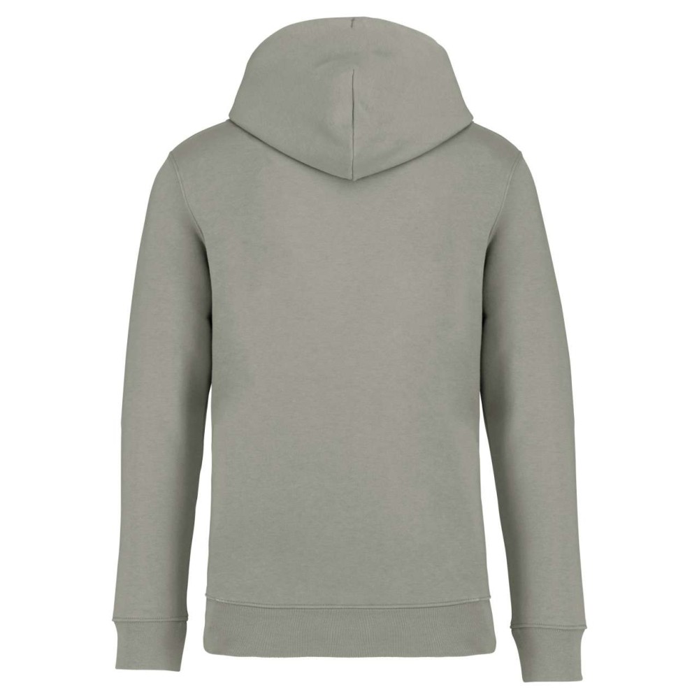 85 % bio, fésült pamutból és 15 % újrahasznosított poliészterből készült. Unisex. Egyenes szabás. Méretcímke organikus pamut és újrahasznosított poliészter logóval. LSF (Low Shrinkage Fleece: előzsugorított polár) kezelés. Kapucni. 1x1 bordás szegély és kézelő. Duplatűzés a kézelőn, a szegélyen és a nyaknál. Szalagozott nyakbelső hátul. Bélelt kapucni, a nyaknyíláson nincs felülvarrás, csak egy megkötés, hogy a húzózsinór a felső részen maradjon. Kerek húzózsinór a kapucnin fém véggel. Kenguru zseb. Nincs márkajelzés a nyakrészen, csak egy méretcímke a könnyű dekorálás érdekében. Karton függőcímkével érkezik, amely felsorolja a termék előállításához felhasznált környezetbarát anyagokat. Organikus pamutfonal. OEKO-TEX N CQ1007/7 STANDARD 100 tanúsítvánnyal rendelkezik. IFTH. 350 g/m2. Emblémázás: Hímzés, Szitanyomás