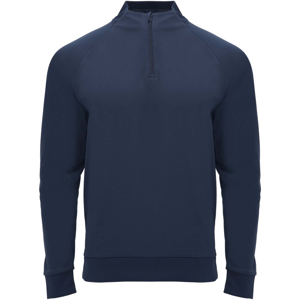 Technikai anyag. Raglán ujjak. Belül bolyhos anyag. Negyedcipzár azonos színű megerősített, fedett öltésekkel. Bordázott nyak-, ujj- és aljpasszé. Eltávolítható címke. Emblémázás: Hímzés, Szitanyomás