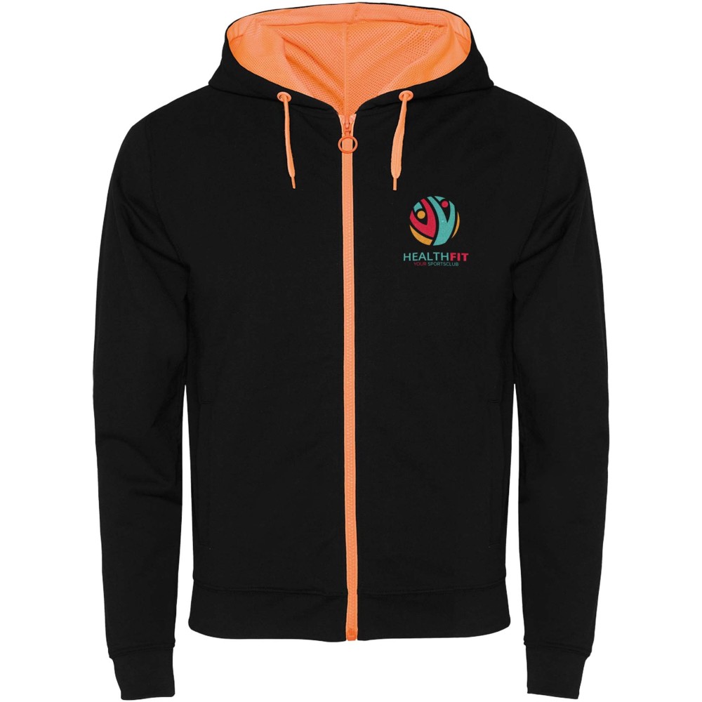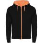 Roly Fuji uniszex cipzáros pulóver, Black, Fluor Orange