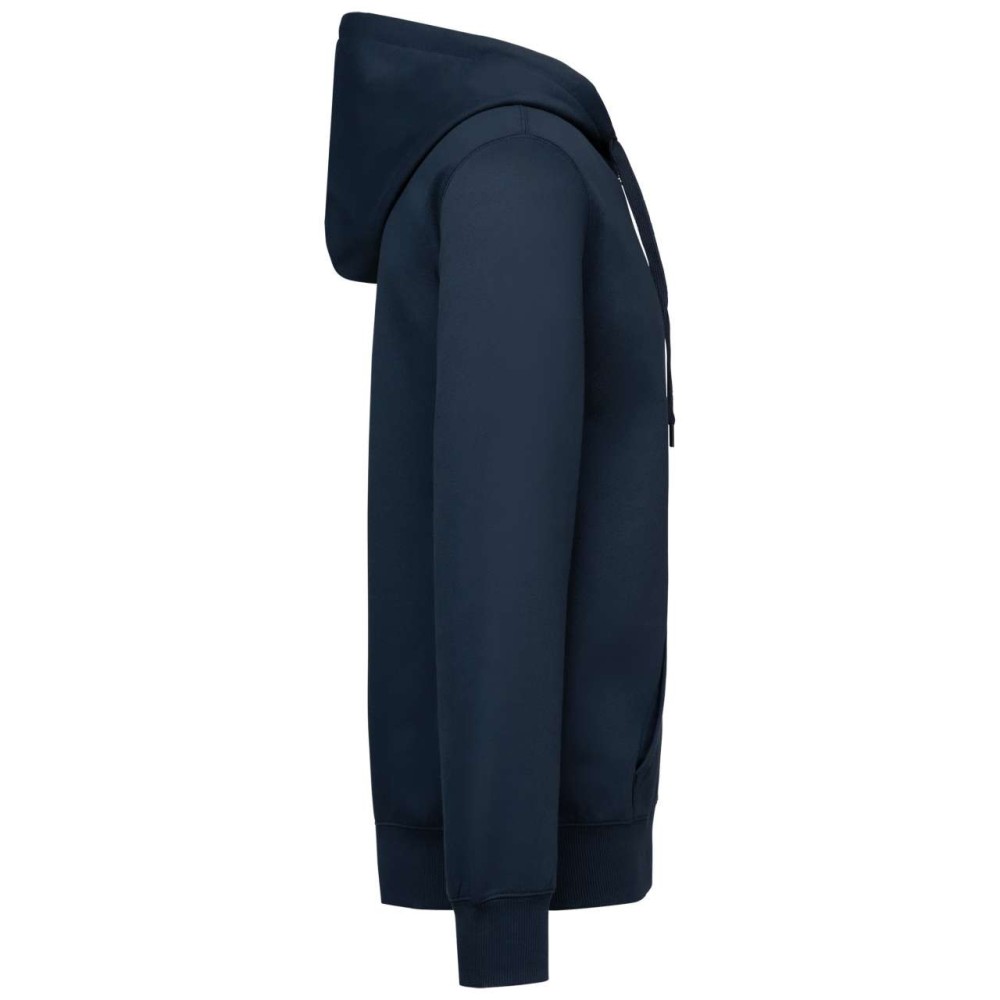 50% gyűrűs fonású pamut / 50% újrahasznosított poliészter, fésült pamut. Egyenes szabású, vágott és varrott. 1x1 bordás kötés a nyakkivágás, a mandzsetta és az alsó szegély jobb megjelenése érdekében. Kenguruzseb. Policotton dzsörzé bélésű kapucni lapos húzózsinórral. Színben illeszkedő dzsörzé szalagos belső a nyakkivágásnál. Csak méretcímke márkajelzés nélkül. 280 g/m2 Emblémázás: Hímzés, Szitanyomás