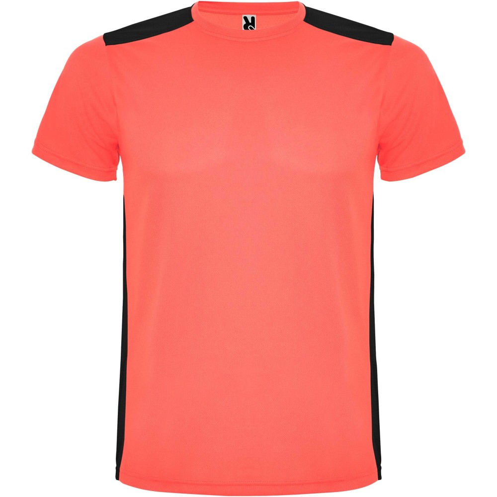Roly Detroit rövid ujjú uniszex sportpóló, fluor coral, solid black