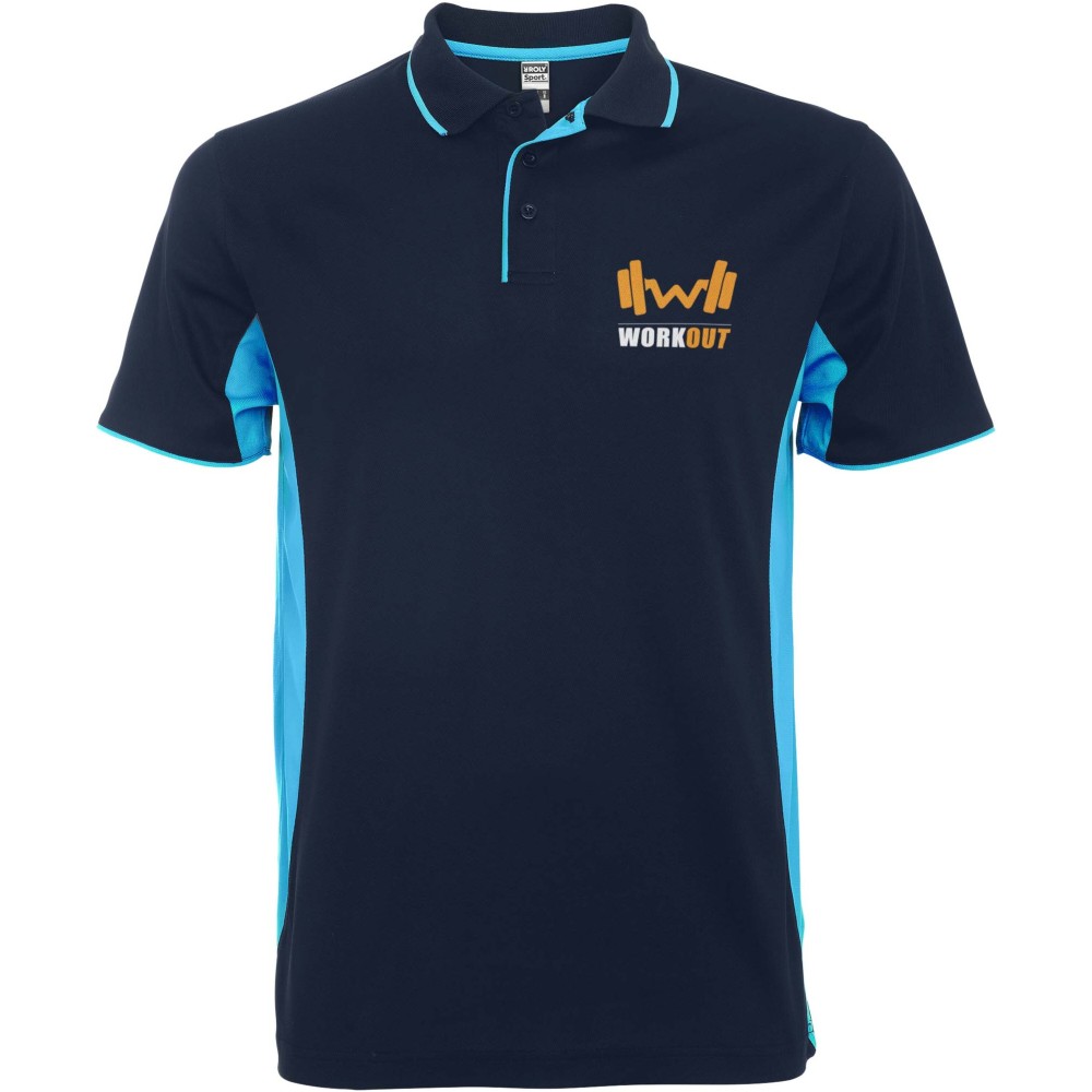 Roly Montmelo rövid ujjú uniszex sportpóló, navy blue, sky blue
