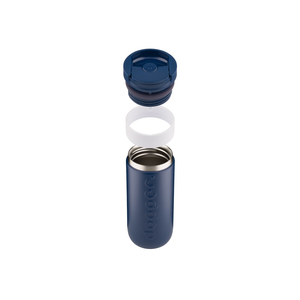 Reggeli koffeinlöket, napközbeni hidratálás vagy esti frissítő pezsgés ? ez a Dopper Travel Mug mindenre készen áll, bárhová is tartasz. Gőzölgően melegen tartja a forró italokat, hűvösen a hidegeket, és megőrzi a szénsavas italok buborékait is. Nincs szivárgás, nincs macera, nincs súlyfelesleg ? és határozottan nincs egyszer használatos hulladék. Könnyen nyitható, lepattintható kupakkal rendelkezik; az italokat akár 6 órán át melegen, 20 órán át pedig hidegen tartja. Duplafalú, 90%-ban újrahasznosított rozsdamentes acélból készült, tartós bevonattal ellátva. Mosogatógépben (emblémázás nélkül nélkül) 65 °C-ig mosható. Kávé vagy tea használata esetén elszíneződés vagy szagmaradvány előfordulhat. Forró folyadékok esetén fokozott óvatossággal használja!