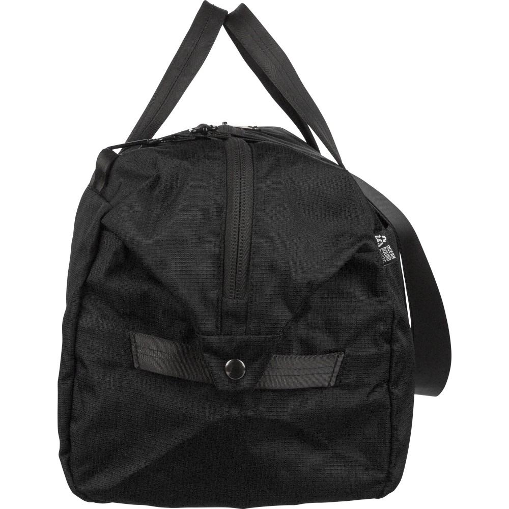 RPET 300D Ocean Bound anyagból készült sporttáska, amely újrahasznosított óceáni műanyagból készül, tartós és texturált felületű kivitelben. 33,7 literes űrtartalommal rendelkezik, nagy fő rekesszel, elülső cipzáras zsebbel és belső cipzáras tárolóval. Két erős fogantyúval, állítható vállpánttal és Ocean Bound Plastic alapanyagra utaló címkével ellátva. Emblémázás: Szitanyomás