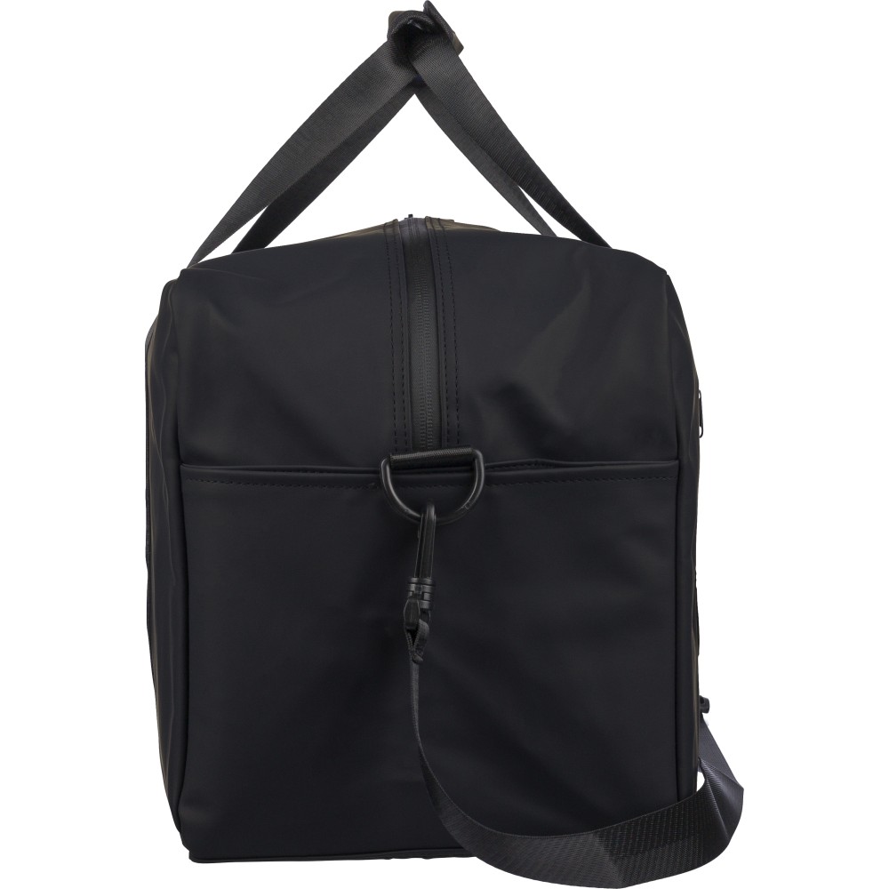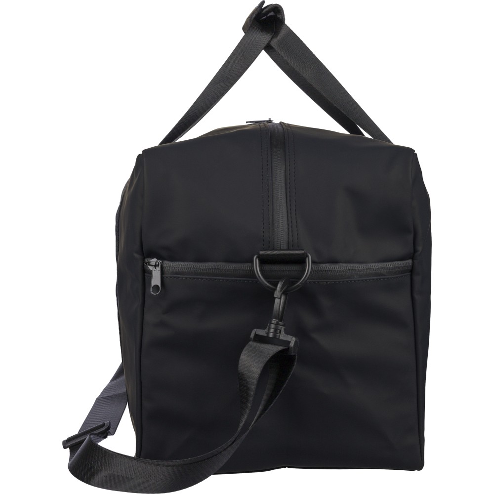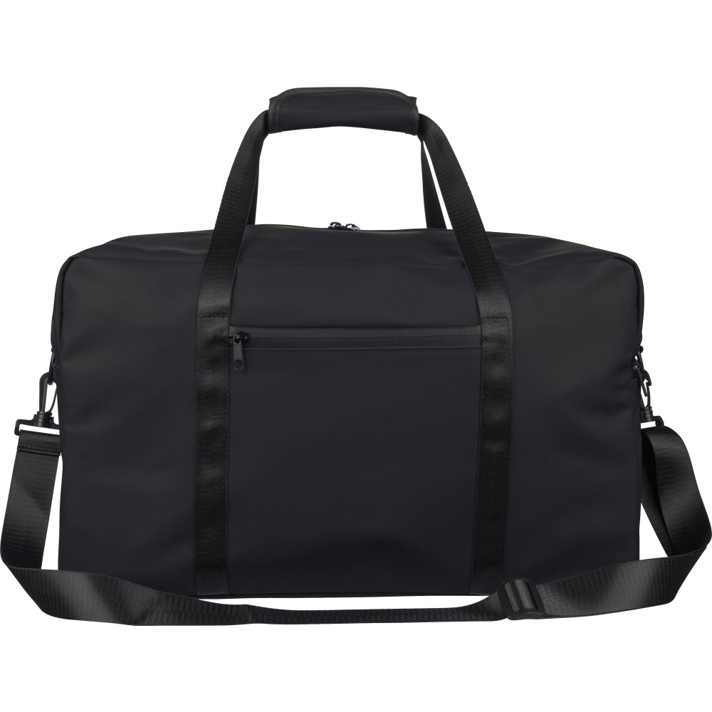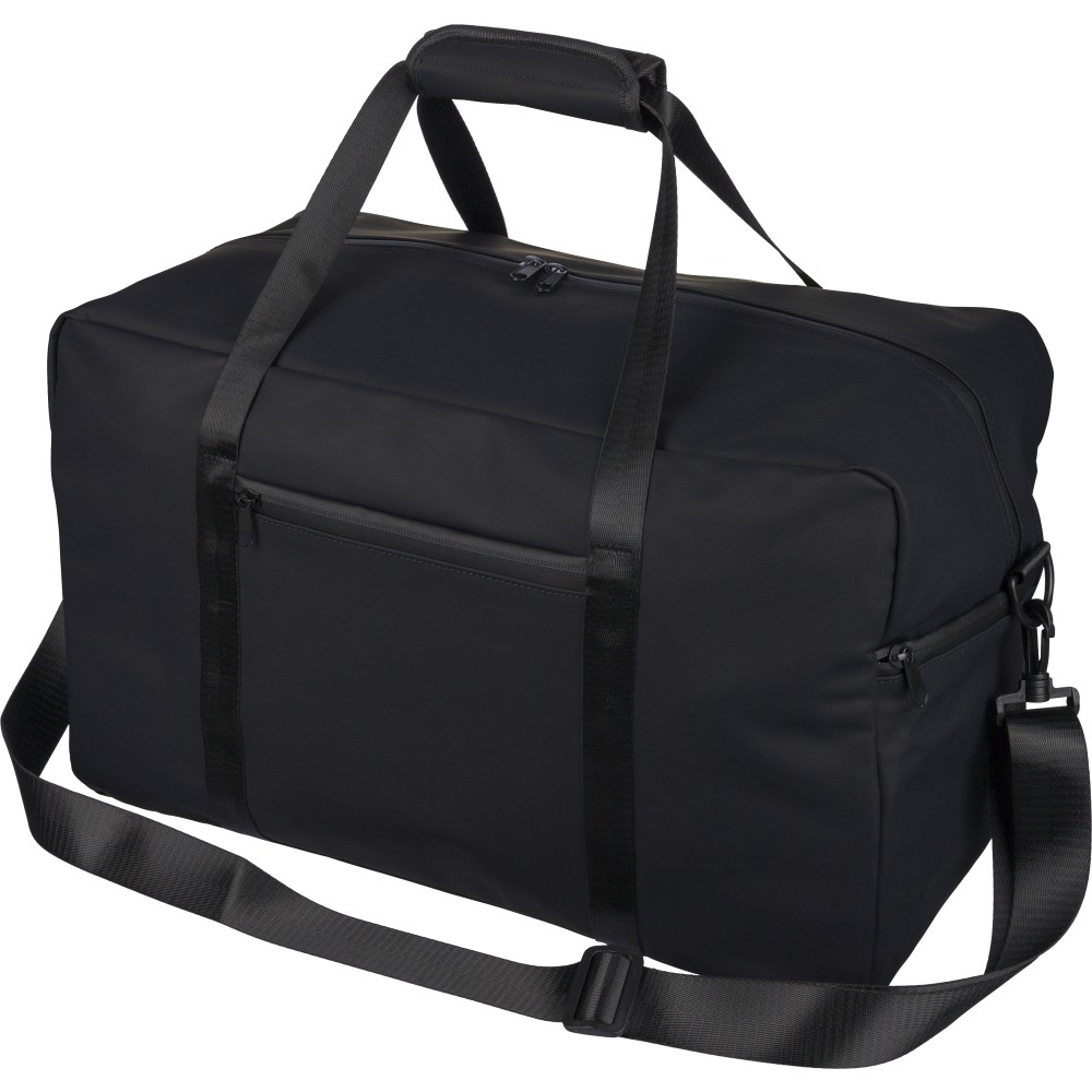 Újrahasznosított PU anyagból készült sporttáska 35 literes űrtartalommal, 210D újrahasznosított poliészter béléssel. 108 cm hosszúságú és 2,5 cm szélességű fogantyúval rendelkezik tépőzáras rögzítéssel, valamint 130 cm hosszúságú és 3,9 cm szélességű állítható vállpánttal. Elülső cipzáras zsebbel és nagy fő rekesszel készül. A belső címkén újrahasznosított alapanyagra utaló logó található. Emblémázás: Szitanyomás