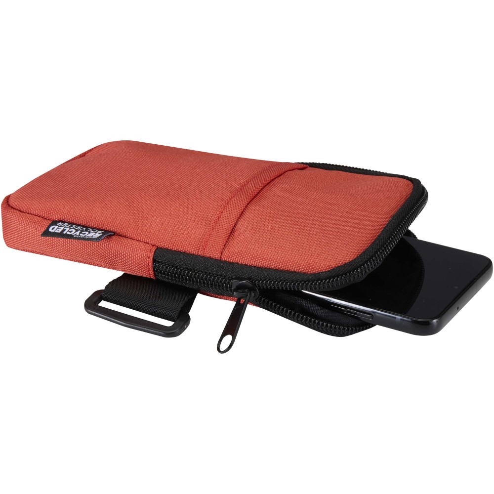 A vízlepergető, GRS tanúsítvánnyal rendelkező újrahasznosított poliészterből készült Byron kulacstartó táska biztonságosan rögzíthető vizespalackokra vagy poharakra, így hidratált maradhat és közben kéznél tarthatja alapvető tárgyait. Az erős tépőzáras rögzítés és a csúszásgátlóval ellátott rugalmas pánt stabil tartást biztosít a palackoknak. A cipzáras főrekeszben biztonságosan tárolhatók az értéktárgyak, beleértve a legtöbb okostelefont, míg az elülső zseb gyors hozzáférést biztosít az apróbb tárgyakhoz, például bankkártyákhoz, igazolványokhoz vagy kulcsokhoz. Ideális választás edzőtermi használatra vagy szabadtéri tevékenységekhez, hiszen tehermentesíti a zsebeket és segíti a rendszerezést, miközben fenntarthatóbb anyaghasználatot képvisel.