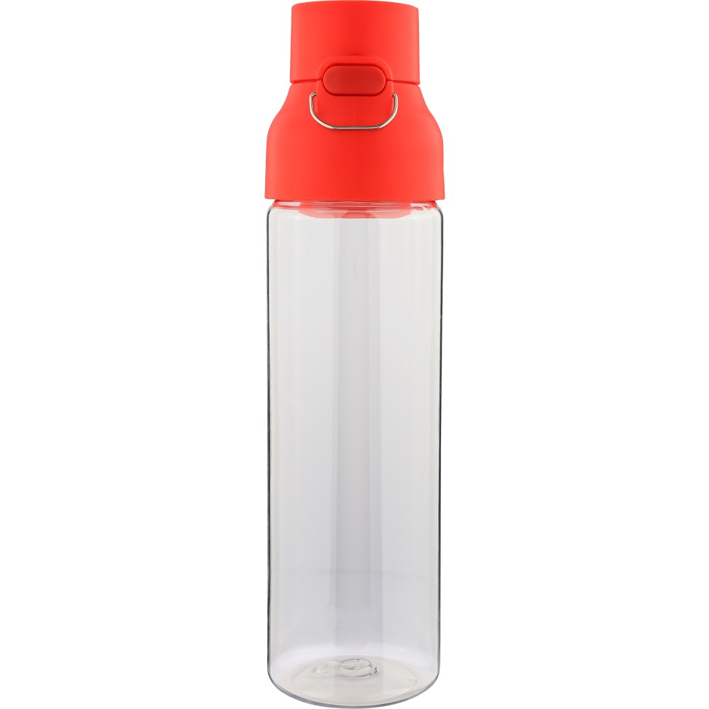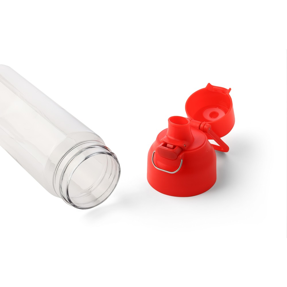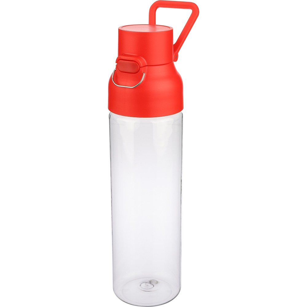 Tritán vizespalack 750 ml-es űrtartalommal, átlátszó palacktesttel és színes kupakkal. Tartós és könnyű anyagokból (PP) készült, amelyek ellenállnak a nedvességnek, a vegyszereknek és a mindennapi igénybevételnek. Mindennapi használatra tervezve; biztonságos nyomógombos zárral és felső hordozófogantyúval rendelkezik. Alkalmas munkához, iskolához vagy szabadtéri tevékenységekhez.