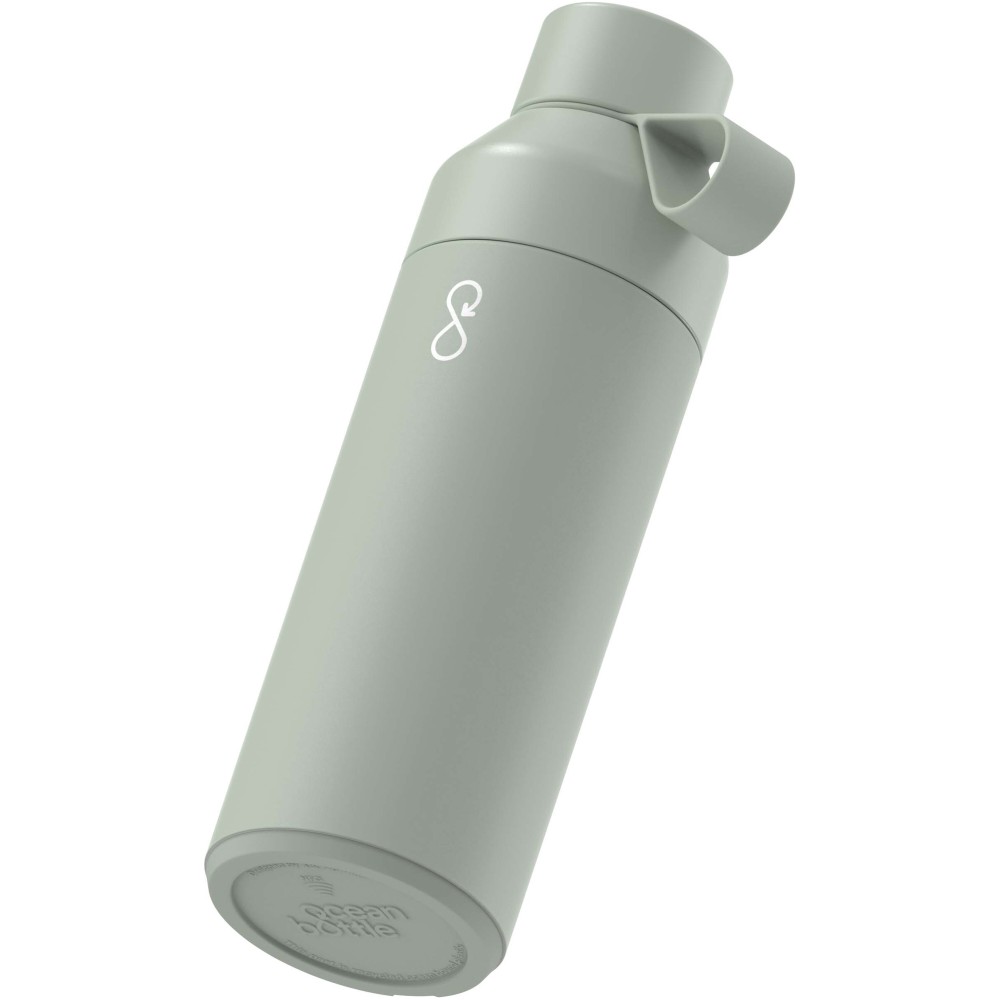 Az 500 ml-es, vákuumszigetelt Ocean Bottle az italokat akár nyolc órán át melegen, és akár tizennyolc órán át hidegen tartja. Minden Ocean Bottle teljesen szénsemleges, és gyártása során 1000 műanyag palack kerül összegyűjtésre, hogy javítsa a tengerparti közösségek megélhetését. A palack újrahasznosított rozsdamentes acélt és újrahasznosított óceánhoz kötődő műanyagot tartalmaz, és az NFC Smart Chip lehetővé teszi, hogy minden újratöltéskor több műanyagot gyűjtsön össze . A kettős nyílás megkönnyíti a palack tisztítását és feltöltését, a szivárgásgátló fedél pedig könnyen szállítható hurokkal rendelkezik. A palack mosogatógépben mosható és BPA-mentes. 70% újrahasznosított rozsdamentes acél és 10% PET műanyag és 10% újrahasznosított PET műanyag és 10% szilikon műanyag. Emblémázás: Gravírozás, Tamponnyomás